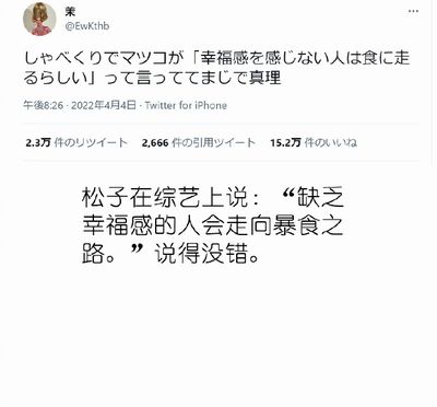 「マツコが言った幸福感と食の関係性についての真理がこちら」という記事が中国版ツイッターのWeiboに掲載され、中国人のコメントがたくさん投稿されています。ご紹介します。