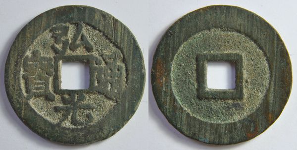 (訳者注: [銅銭] 中国では銅を素材として貨幣を鋳造する歴史は古く,銅貝や刀貨(銭),布銭(貨)にまでさかのぼるが,一般に銅銭というときは正方形の穴(方孔)を中央部にもつ銅製の円銭を指す。古代帝国秦・漢より,元代を除き,清朝末期に至るまで基本貨幣として用いられた。戦国時代には貨幣経済が盛んとなり,とくに都市において商取引が貨幣で決済されるようになると,旧来の布銭や刀貨は角ばって扱いがたく使用に不便であったためか,しだいに円形化したり単純化する傾向が生まれた。/ per kotobank)