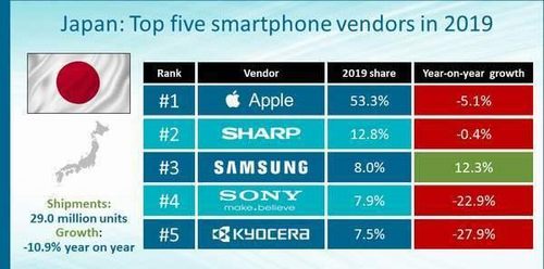 この結果で最も恥ずかしいのは世界トップのスマホメーカーを自称するサムスンだろうな。日本でのシェアは8%しかないのか。そして世界で認められていることを自称しているファーウェイはランク外。恥ずかしく思われる権利もないということか [230 Good]