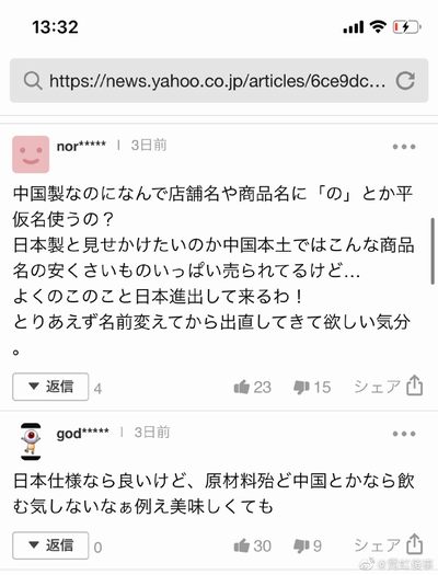 (訳者注:中国で人気の飲料メーカー「元気森林」が実は中国のブランドだというネット記事が少し前に発信され、中国で話題となりました。「気」を簡体字の「气」ではなく日本の「気」を使用し、日本との繋がりを随所にあらわす戦略のため、日本企業と勘違いする中国人がかなりいたようです。詳しくはこちらからどうぞ。今回の「奈雪の茶」はひらがなの「の」を使用していますが、「奈」「雪」「茶」はどれも簡体字と日本語が同じ表記のため、この問題は発生しません)