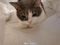 雲南さんの白猫はお手てなのか、へちゃむくれの顔なのか