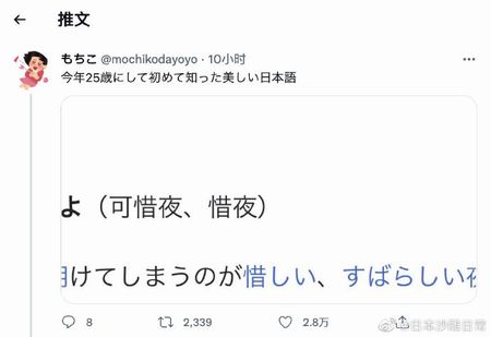 「日本語にはこんな美しい言葉があるらしい」という記事が中国版ツイッターのWeiboに掲載され、中国人のコメントがたくさん投稿されています。ご紹介します。