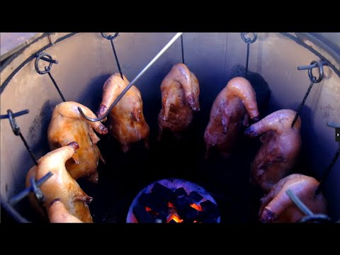 (訳者注:かまどで焼かれるアヒル・・・「吊炉烤鸭」です。北京ダック店などでよくみられる以下のようなものです)