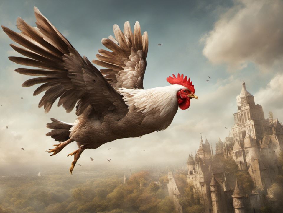 鶏って、あんなに飛べるのか?そういう飼育したのか?ドローンに使えるな。その前に食っちゃうけど。手羽先、手羽先。