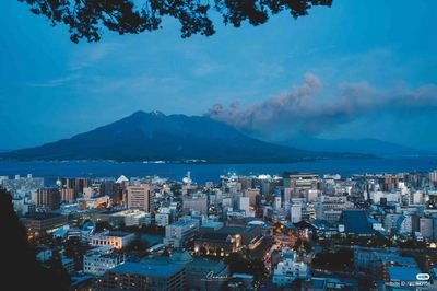 海と火山に面し、城山展望台から落ち着いた夜の景色を眺めることができる。
