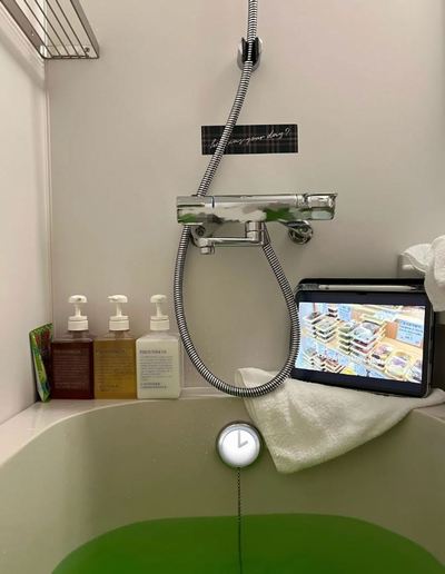 一日中思い切り観光を楽しんだ後、ホテルに戻ってバスタブにお湯を張り、買ってきた入浴剤を入れる。動画を20分間見ながらお風呂に浸かっていると、顔が真っ赤になるほど温まる。