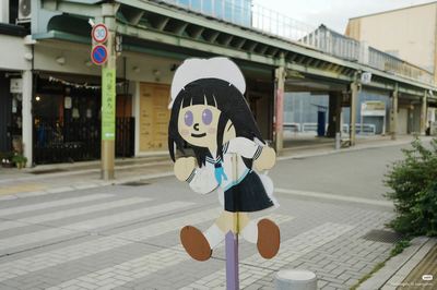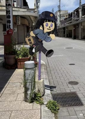 高山市の千反田邸では両面仕様。片面は学生、裏面は交通警官