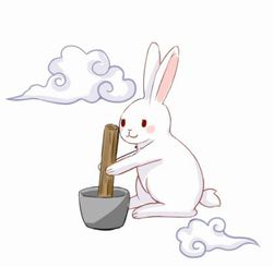 (訳者注:ウサギが月で薬を砕くイメージ図です)