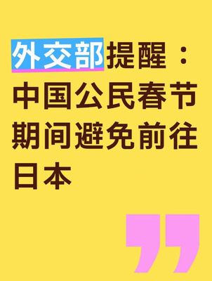 中国外務省は26日、2月中旬から始まる春節(旧正月)に伴う大型連休を控え、自国民に日本への渡航自粛を改めて呼びかけた。同省は理由について「日本の治安情勢に不安があり、中国人を狙った犯罪が多発し、一部地域で地震が頻発している」などと一方的に主張した。